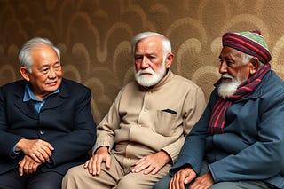 three old men are talking