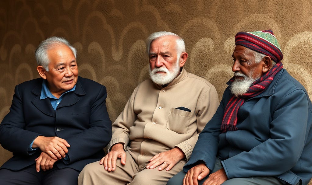 three old men are talking