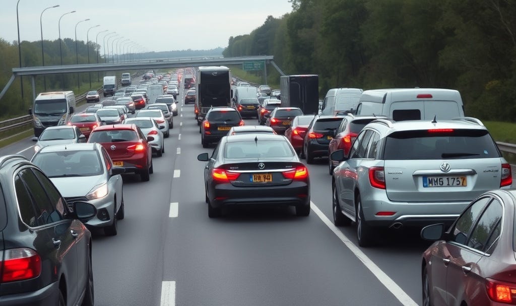 One day, a wife calls her husband and says, “be careful driving home — the radio is saying that some total moron is driving down the wrong side of the motorway.”